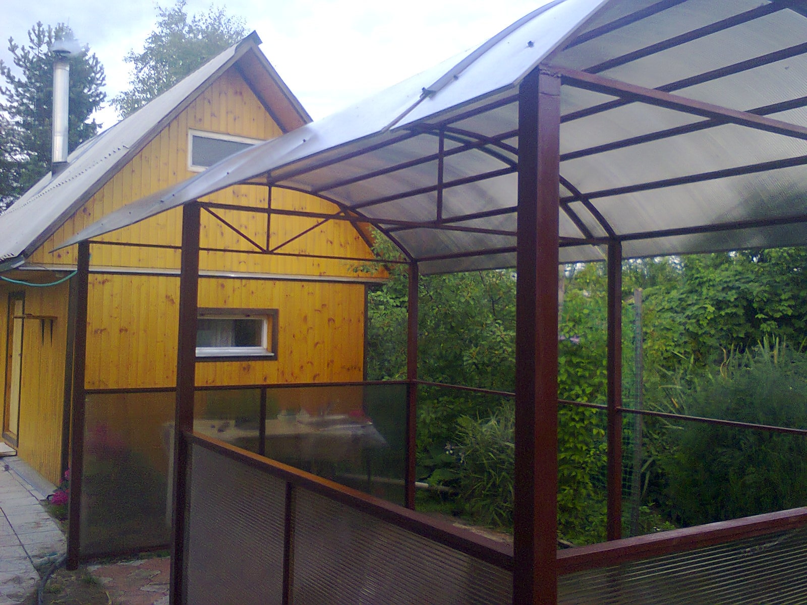 За день на даче изготовили арочный навес 5 на 7 с покрытием поликарбоната. Привезли уже готовые крашенные фермы и весь остальной материал. Все за собой убрали и увезли мусор. Молодцы!