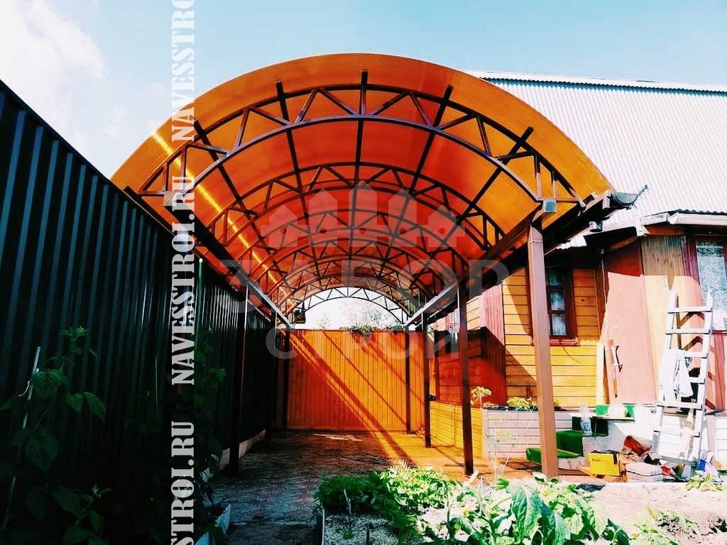 За день на даче изготовили арочный навес 5 на 7 с покрытием поликарбоната. Привезли уже готовые крашенные фермы и весь остальной материал. Все за собой убрали и увезли мусор. Молодцы!